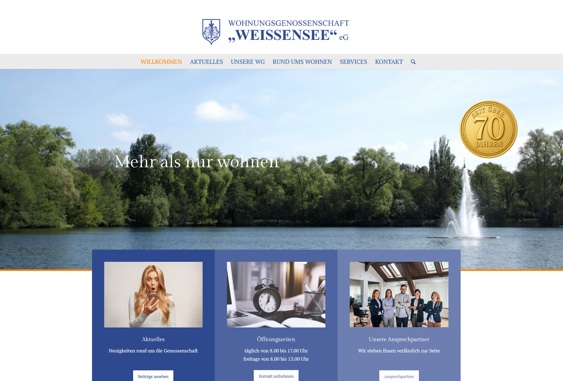 Wir freuen uns, Ihnen die neue Website der Wohnungsgenossenschaft „WEISSENSEE“ eG vorstellen zu dürfen! Mit einem modernen Design, das unsere traditionellen Werte widerspiegelt, haben wir eine Plattform geschaffen, die Ihnen noch mehr Komfort und Übersichtlichkeit bietet.