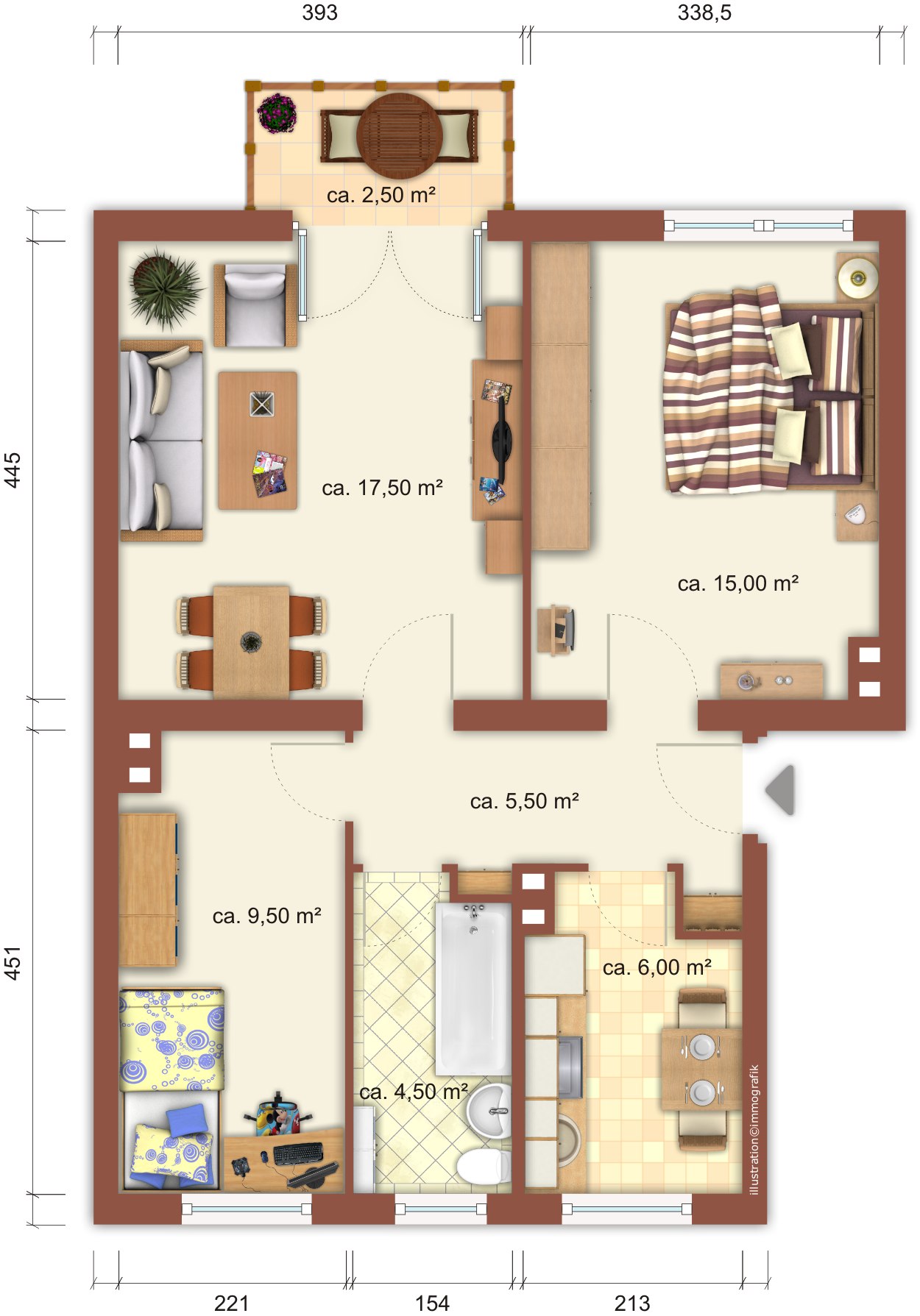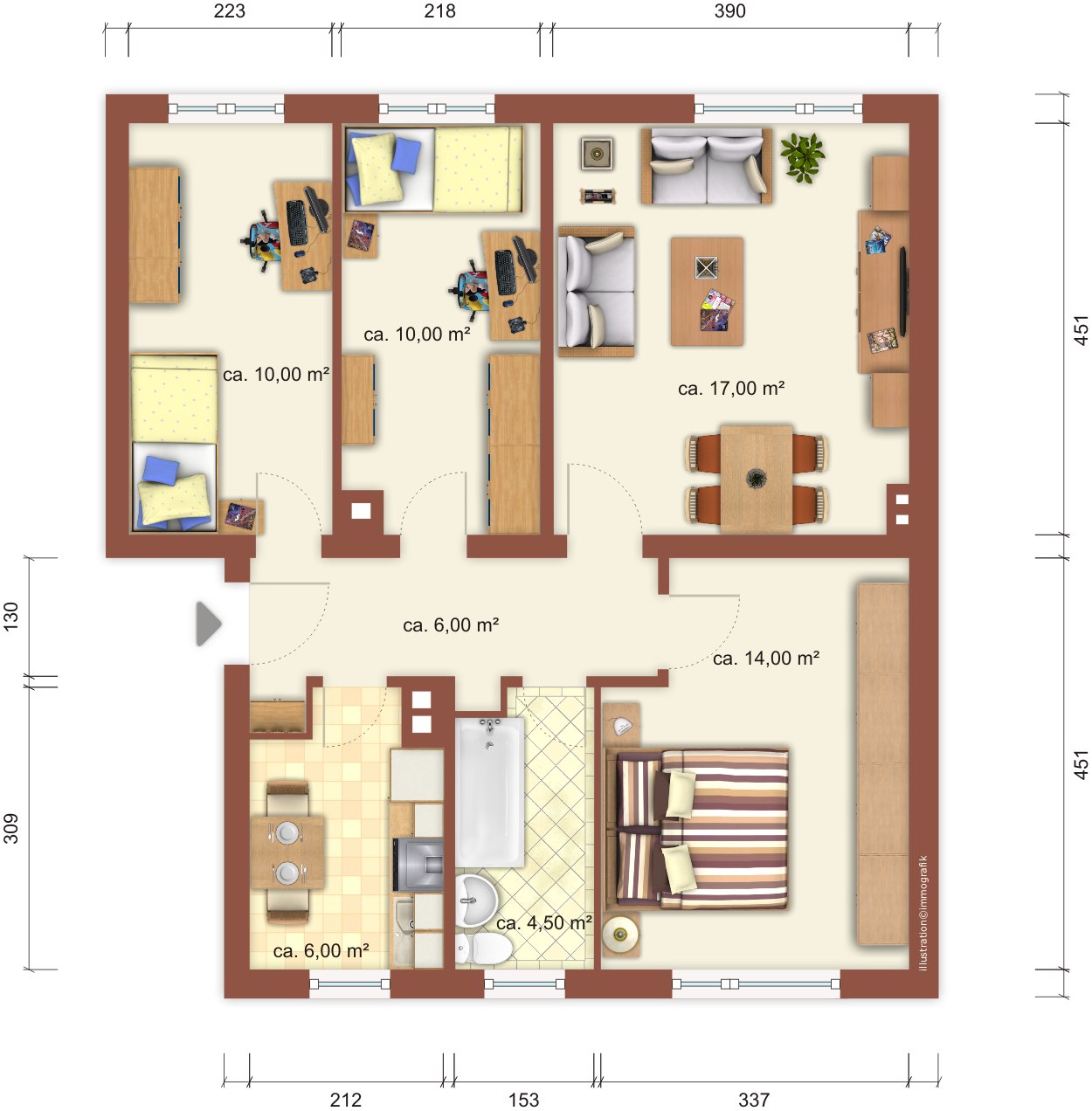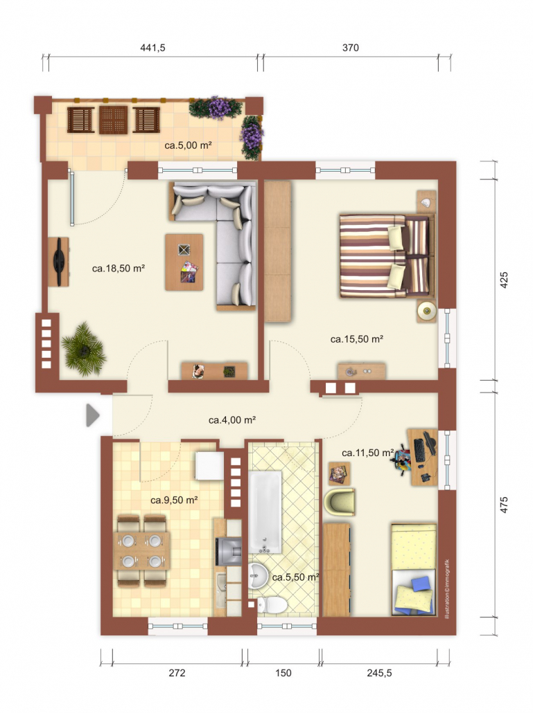 *Die dargestellten Grundrisse sind beispielhafte Darstellungen des jeweiligen Bautyps. Möblierungen dienen ausschließlich der Illustration. Die tatsächlichen Wohnungsgrundrisse und Ausstattungen können abweichen