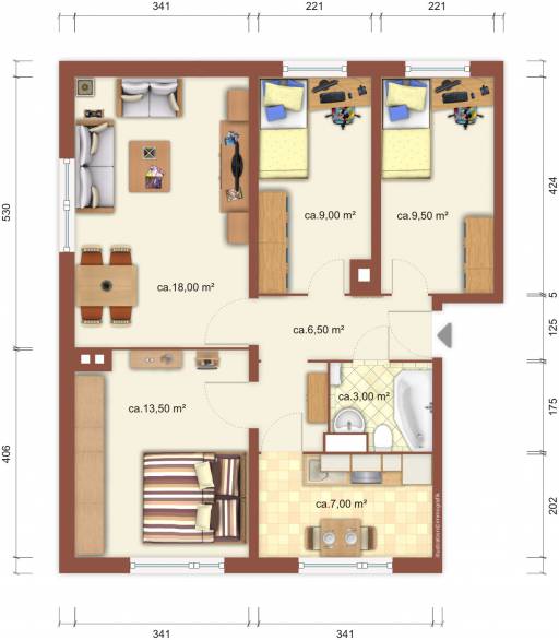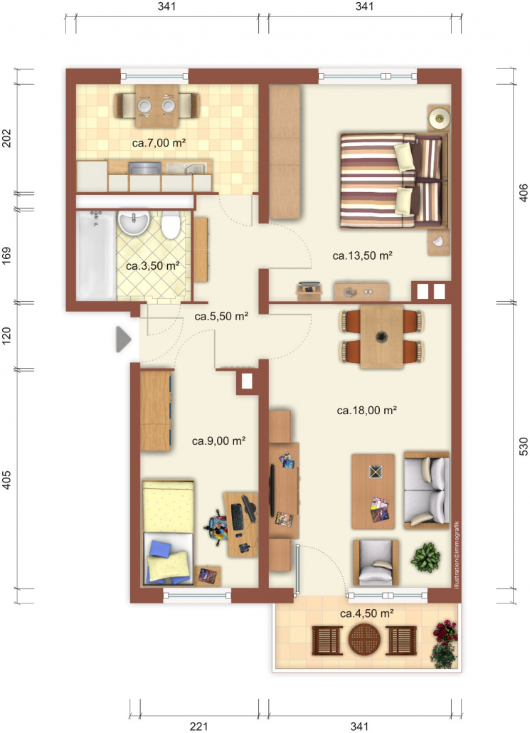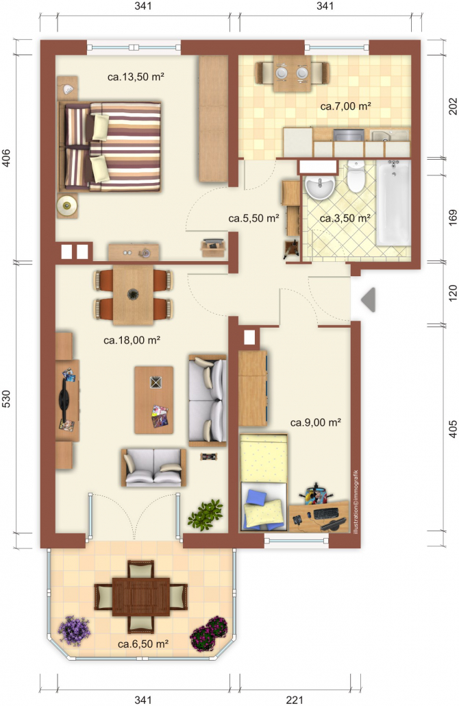 *Die dargestellten Grundrisse sind beispielhafte Darstellungen des jeweiligen Bautyps. Möblierungen dienen ausschließlich der Illustration. Die tatsächlichen Wohnungsgrundrisse und Ausstattungen können abweichen